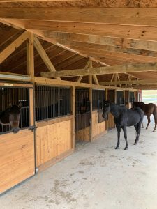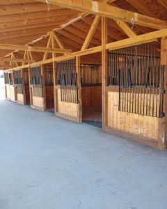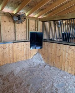 • 10’ x 12’ stall, equipped with a feeder, hay rack, cross ties and a fan