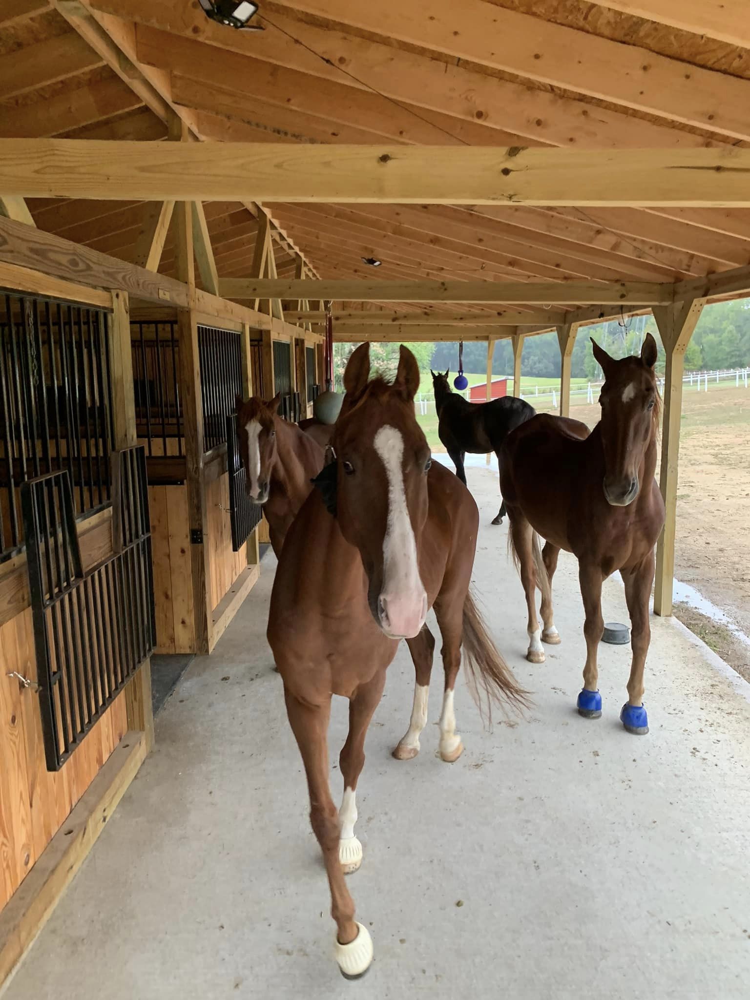 At our facility in Winston-Salem, we strive to provide the best possible living situation for your horse. With shedrow boarding, your horse will have all the necessities they need to thrive and be happy. Thank you for considering us for your horse’s boarding needs!